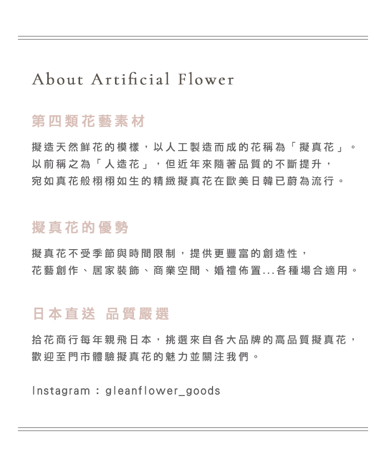 也歡迎至門市親自體驗並選購商品,我們期待與您見面,分享花藝的美好。