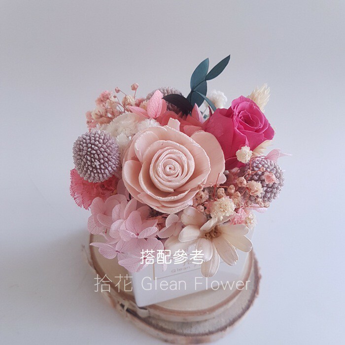 以自行研發的技術染製出柔和自然的色系,可與乾燥花、擬真花、永生花一同運用於花藝創作,提升作品豐富度。